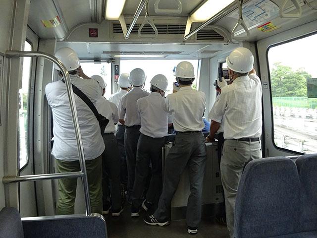 ゆりかもめの仕組みについての説明をした後、車両基地に移動して車両設備の見学や車両点検の体験を行いました。