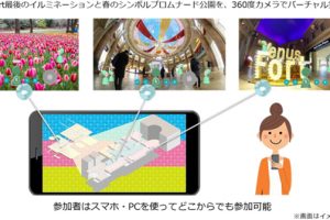 使用策划实施方(TIS株式会社)开发的App "XR Campus Event" ,您可以在线上畅游并观赏VenusFort最后的彩灯活动。在虚拟空间中,参加者以虚拟形象显示,您还可以和其他参加者聊天、与设施内的部分店铺沟通并购物。此外,象征长廊公园每年3月中旬起都有郁金香盛开,这一美景也会向您呈现(影像于活动前夕拍摄)。